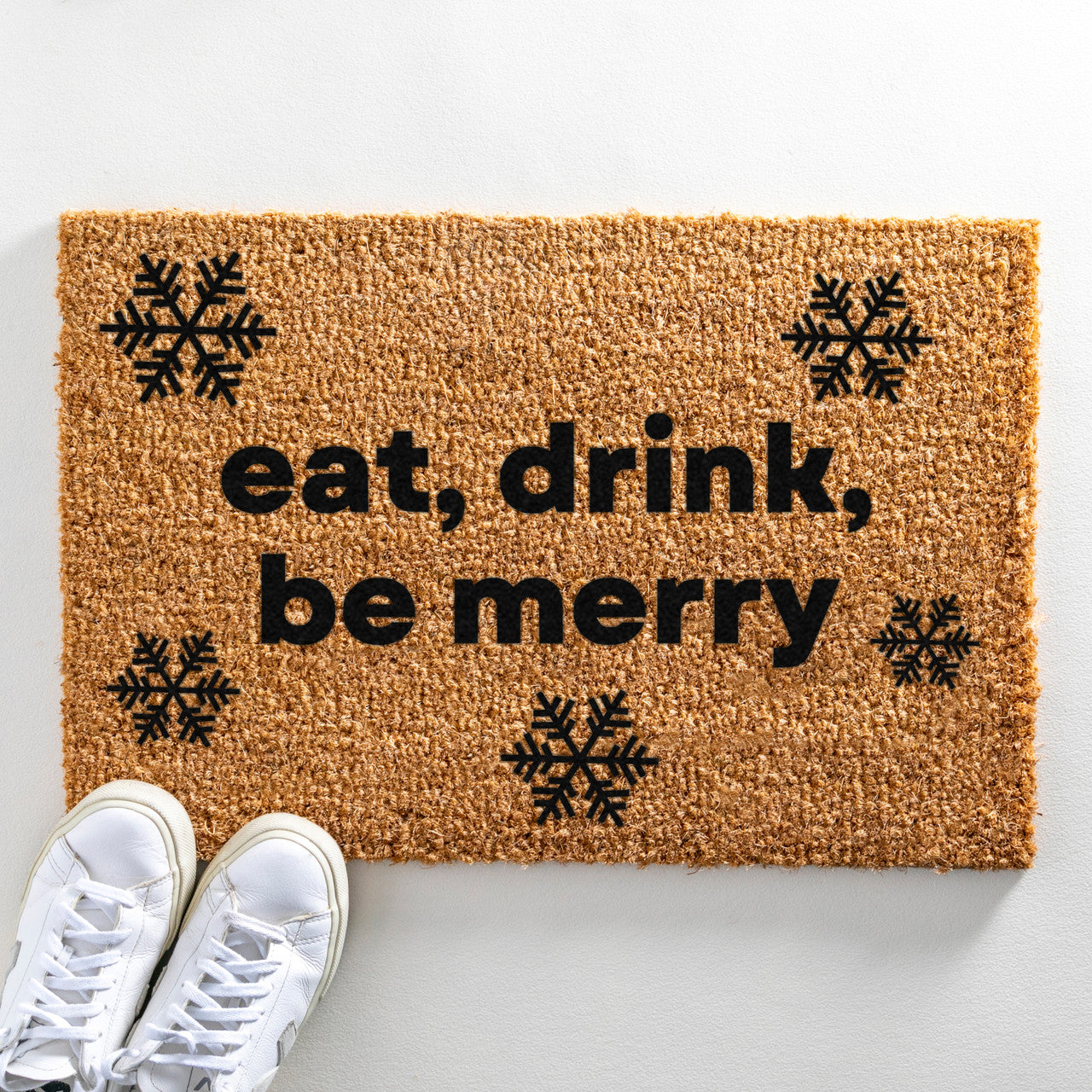Reads "eat, drink, be merry" with a pretty snowflake illustrations, perfect for the wintery festive period.