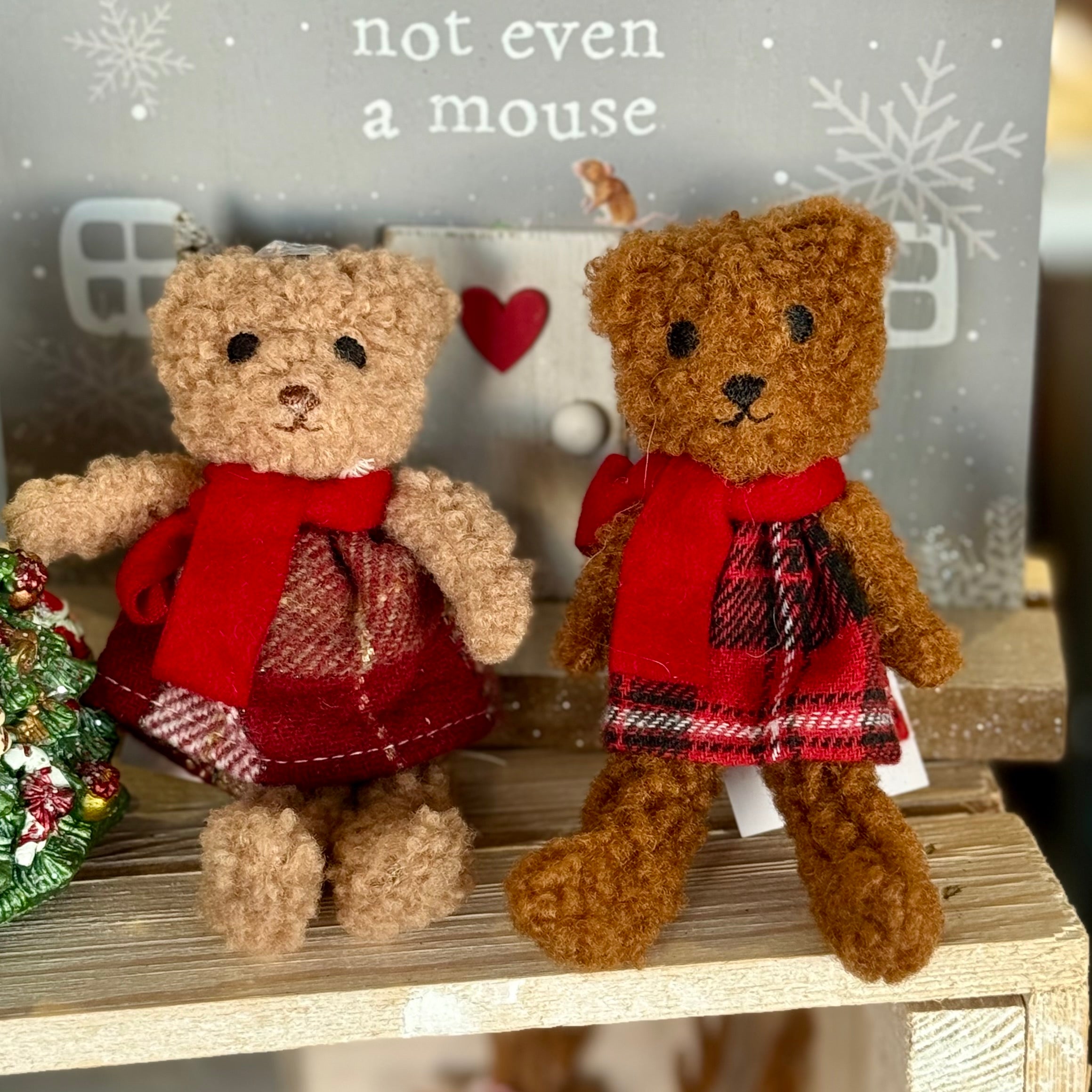 Charming fabric teddy in festive outfits, available as Mr or Mrs. Sold individually. Dimensions: 14cm x 6cm x 4cm