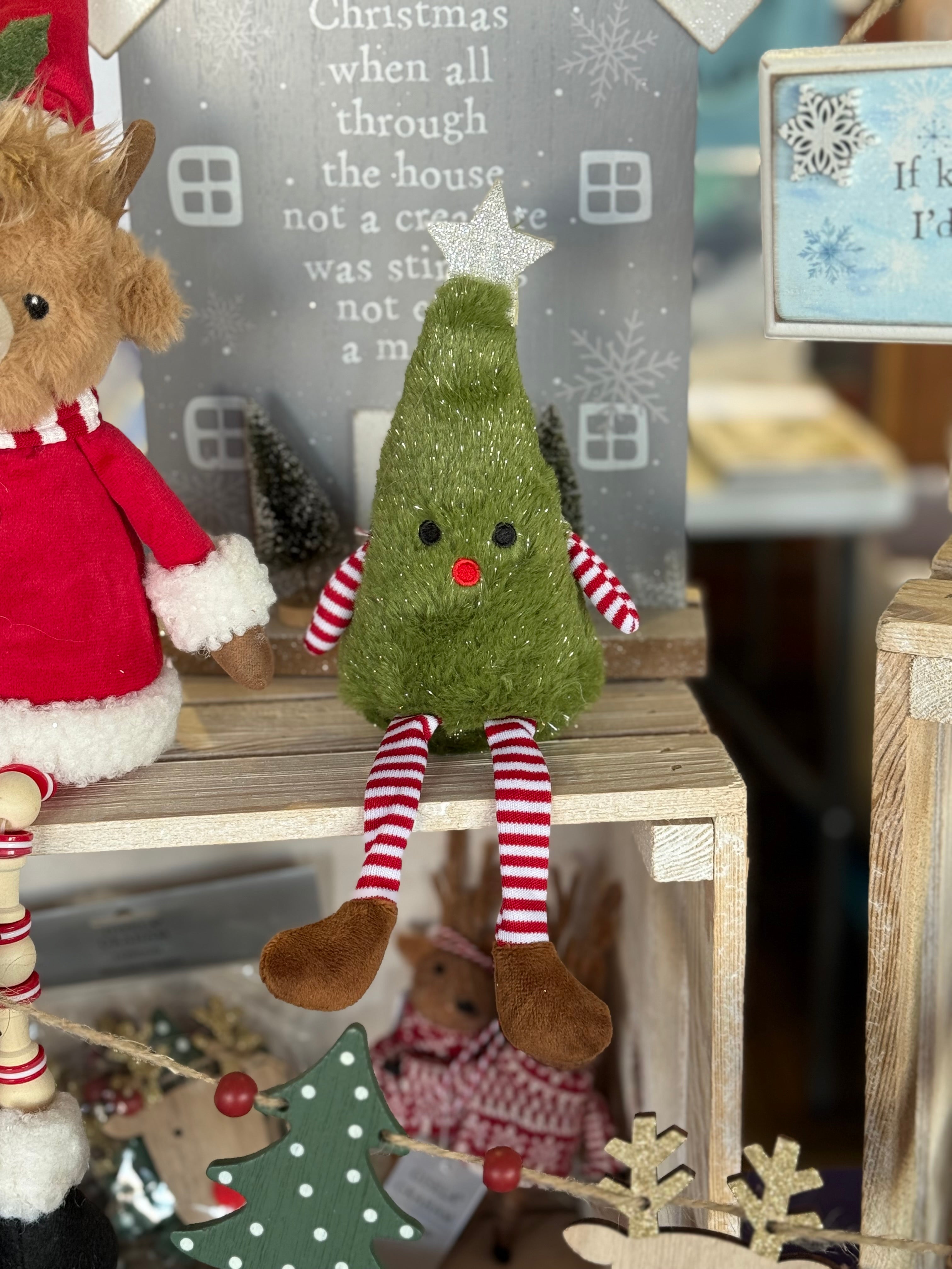 Add a soft, festive touch with an adorable fabric Christmas tree man shelf sitter.