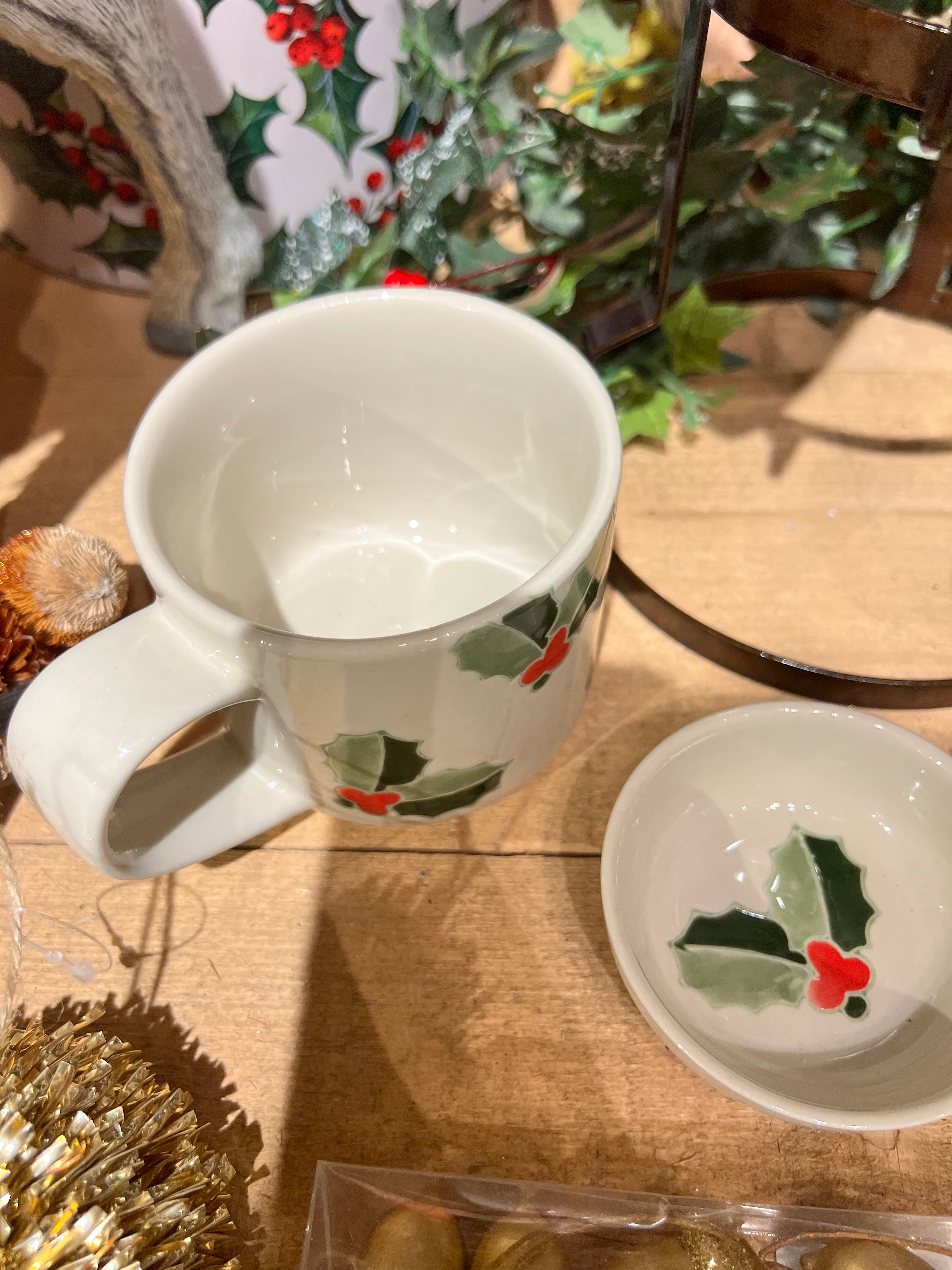 Add a festive touch to your Christmas table with this festive stoneware mug adorned with holly sprigs, ideal for festive beverages.