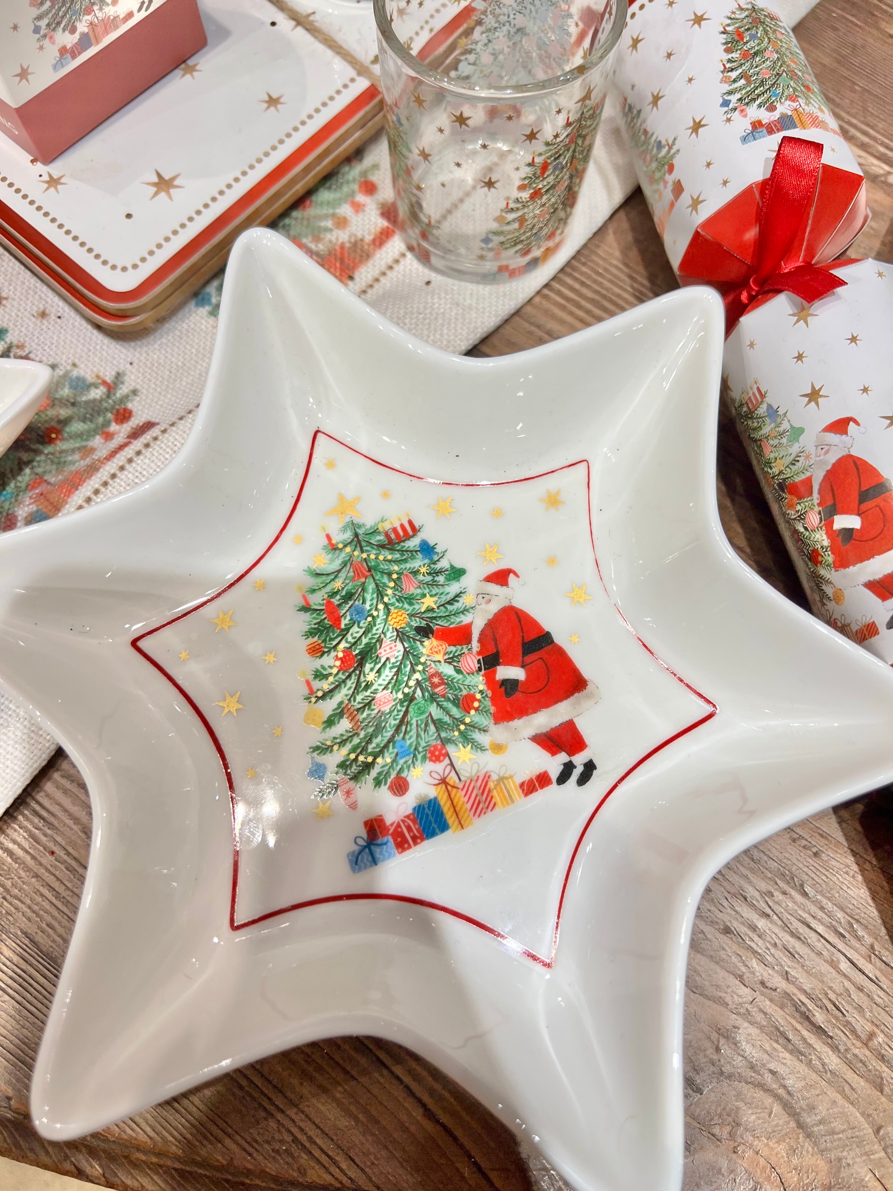 Pair with the matching small star dish, side plate, dinner plate, dishes, coaster, mug, jug, glasses, and tea towel for a coordinated holiday table spread.