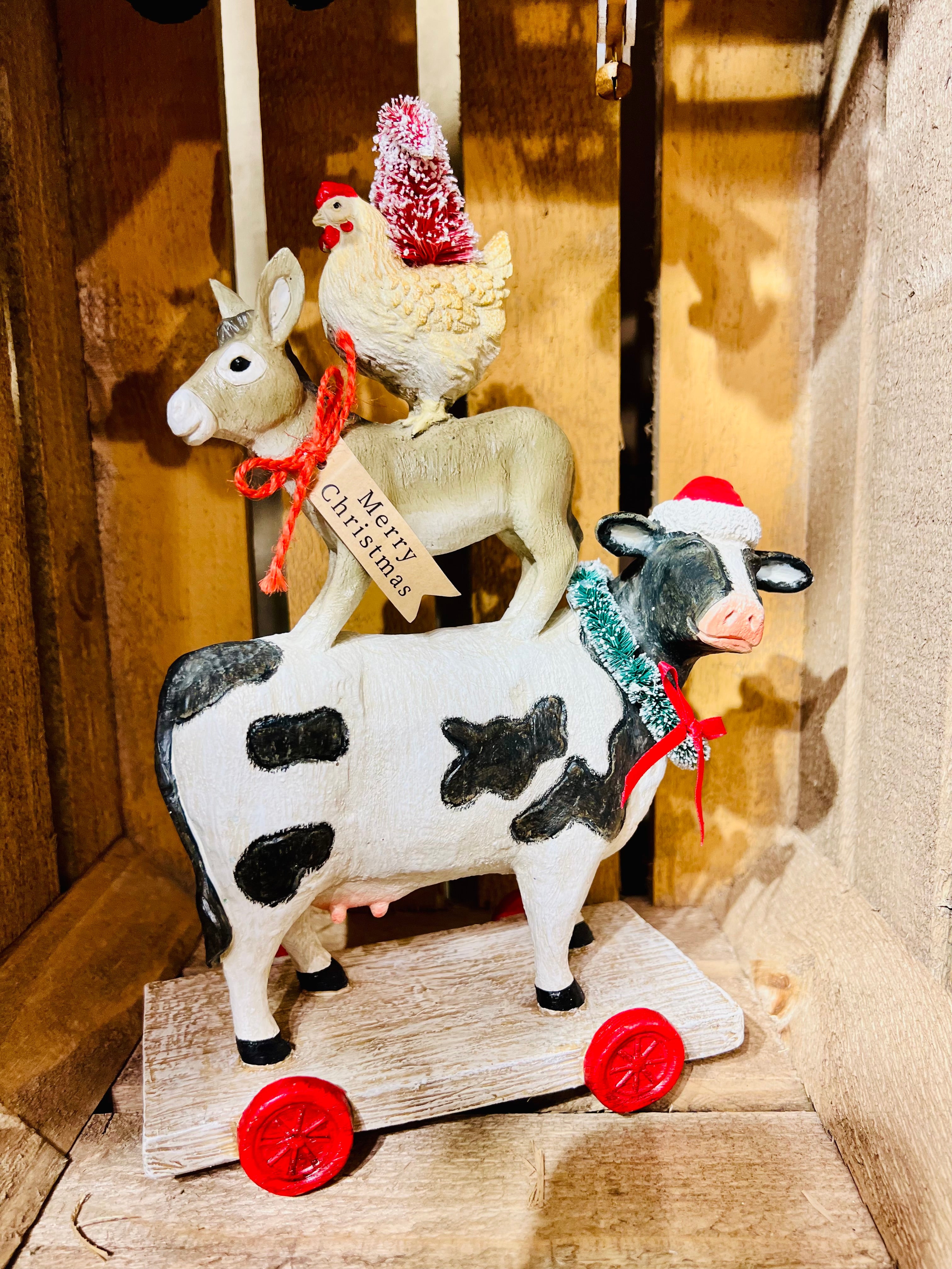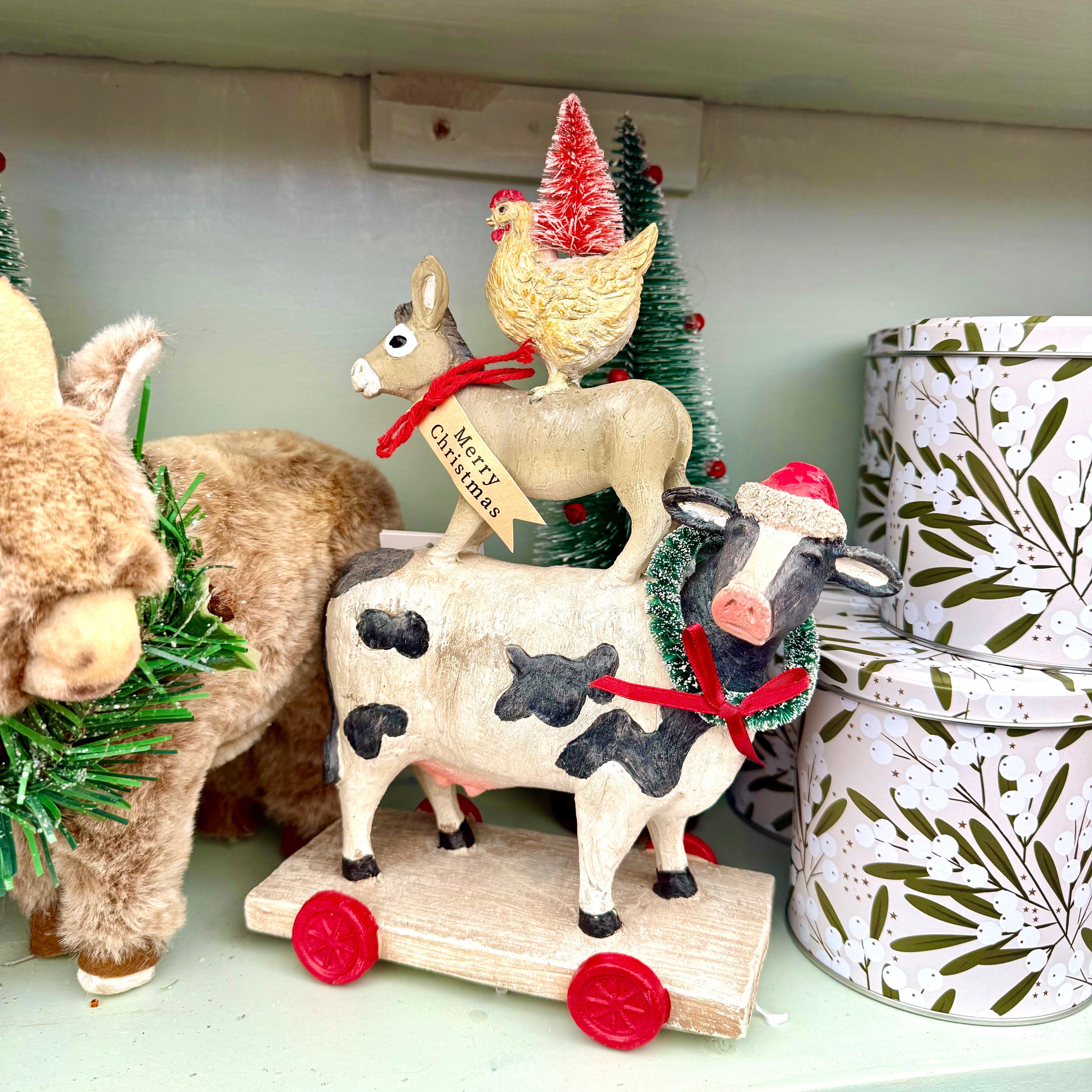 Featuring a delightful stack of favourite farmyard animals, this ornament will bring a playful yet festive accent to any display.