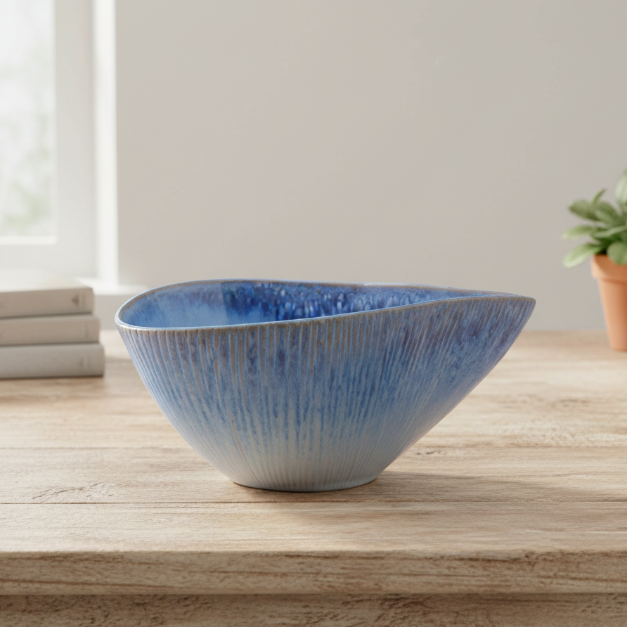 Elevate your table with the serene beauty of our blue ombre stoneware shell bowl.