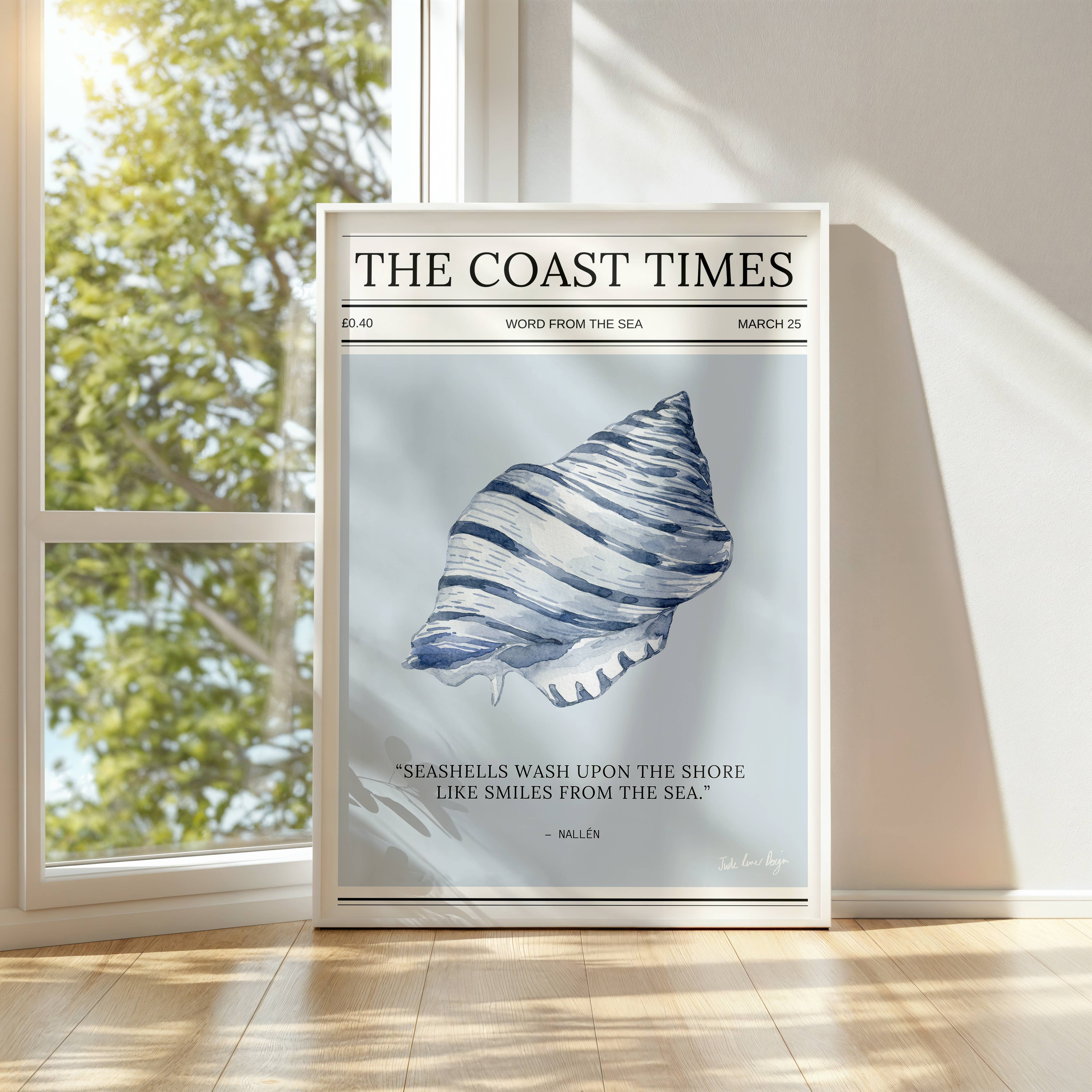 It showcases a delicate watercolour seashell alongside a nautical quote and is printed on 316gsm, 100% cotton paper with a subtle texture and natural white finish for a beautifully realistic, timeless feel.