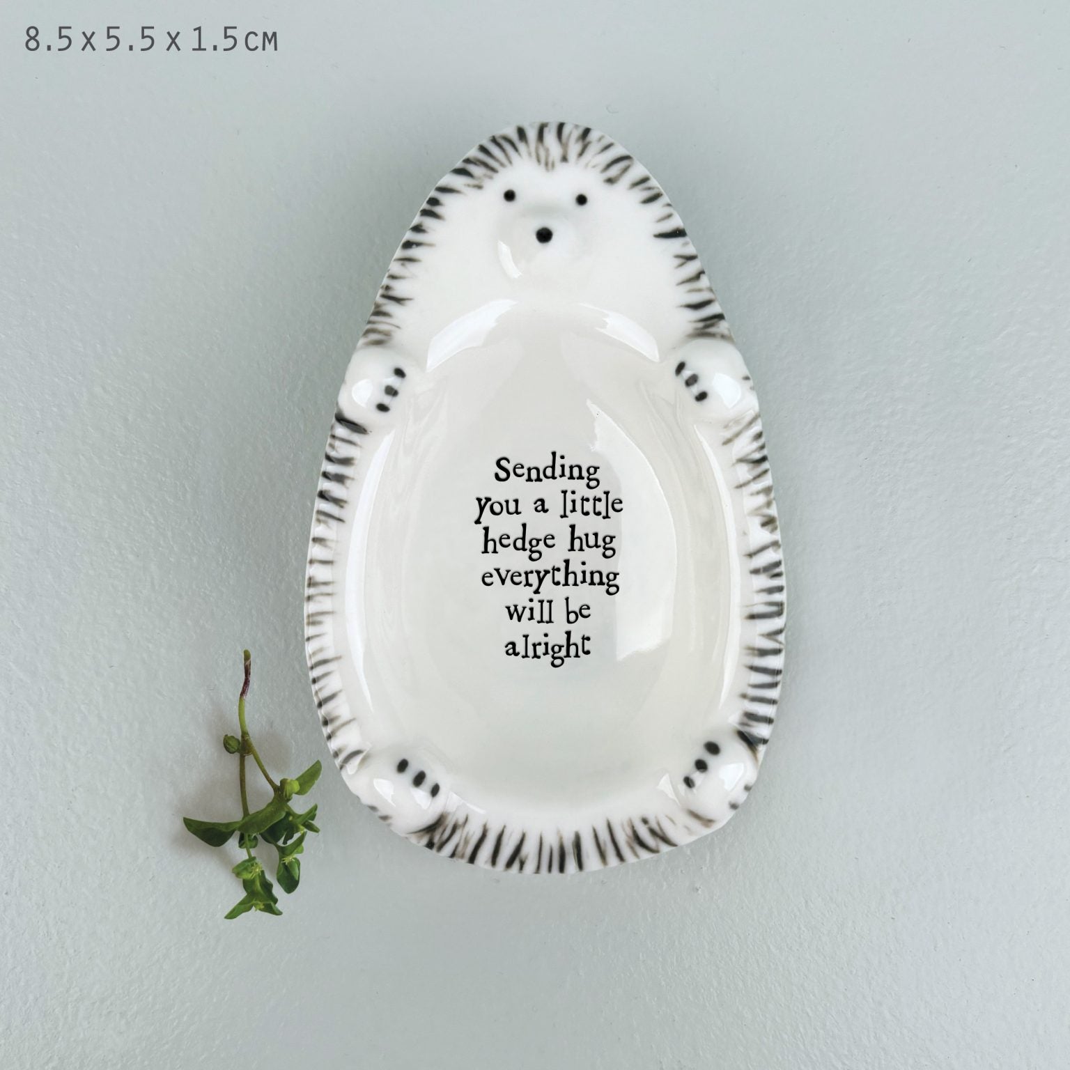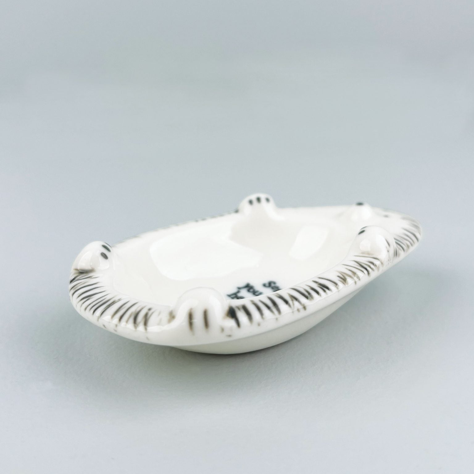 This charming flat dish, shaped like a hedgehog, is perfect for holding trinkets, jewellery, or small treasures.