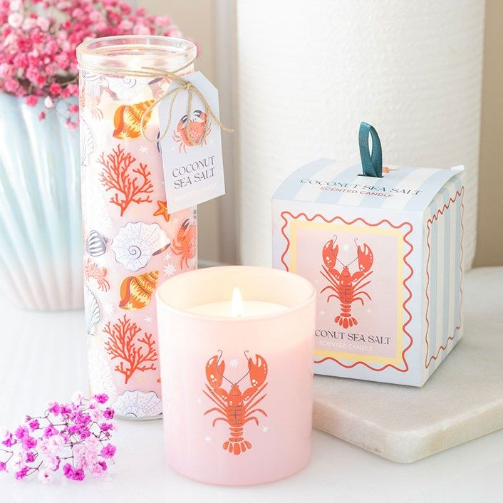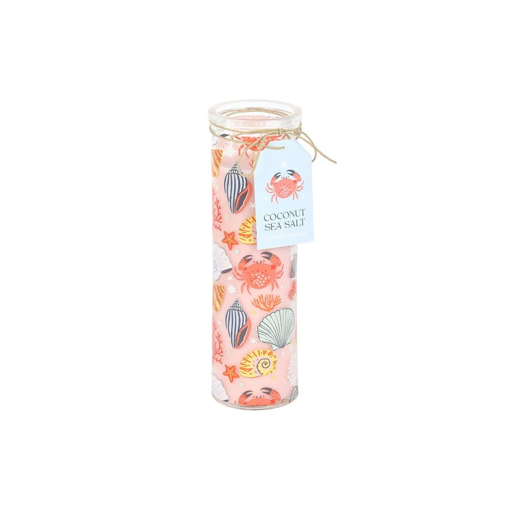 Bring a touch of seaside charm to your home with this tall glass candle, scented with refreshing coconut & sea salt.