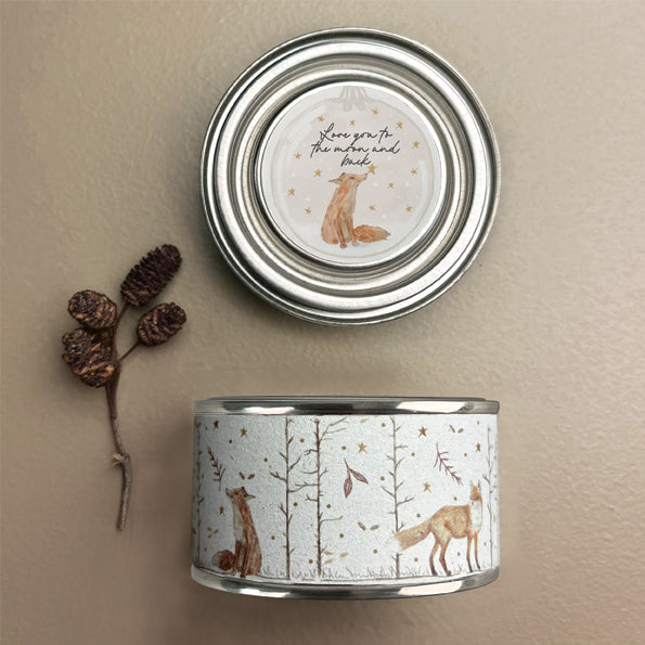 This charming tin candle features a pair of deer, with the lid printed with the heartfelt message, “Thanks for being so kind.”