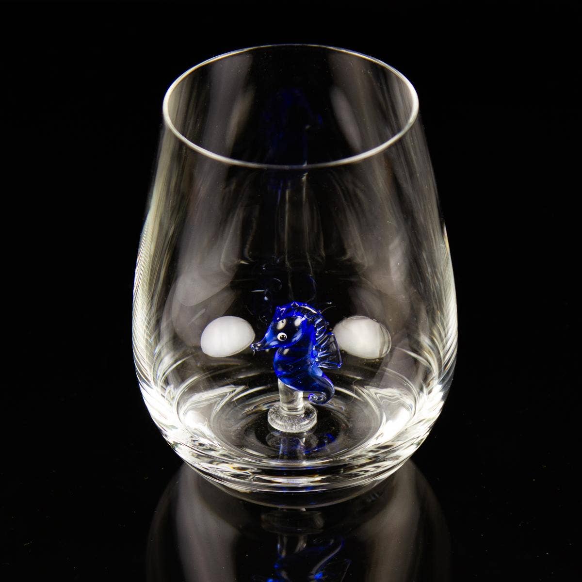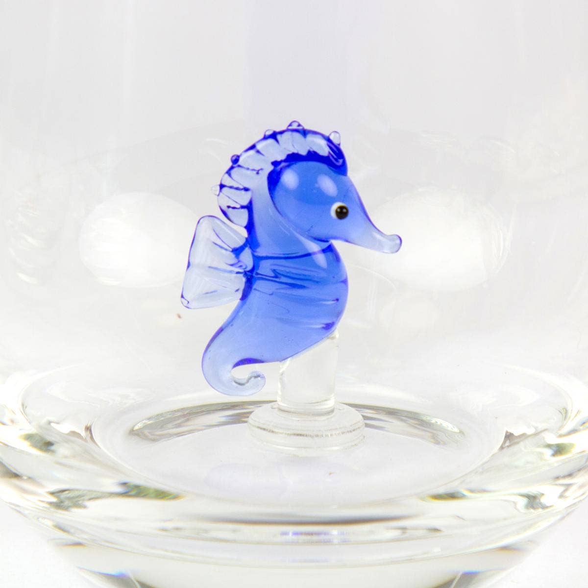 This glass tumbler features a delicate miniature seahorse - a charming way to bring a touch of the sea to your drinks cabinet while keeping track of each drink.