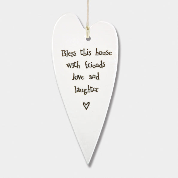 This adorable long porcelain heart would hang beautifully anywhere in the home.