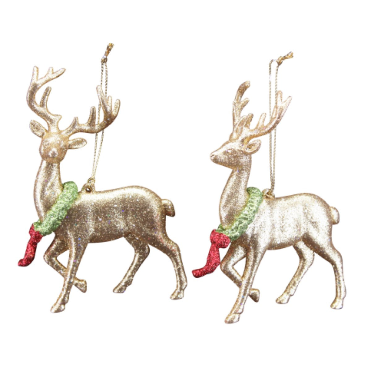 Add a striking festive touch with this shimmering gold reindeer, featuring delicate wreath detailing.