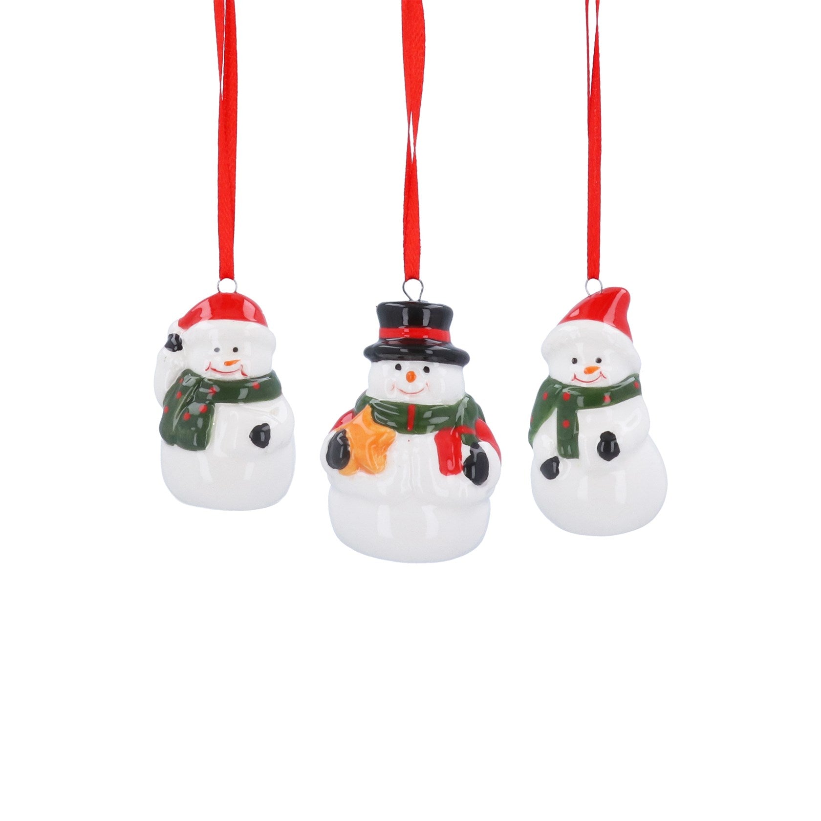 Add a touch of festive charm with these mini hanging ceramic snowmen.