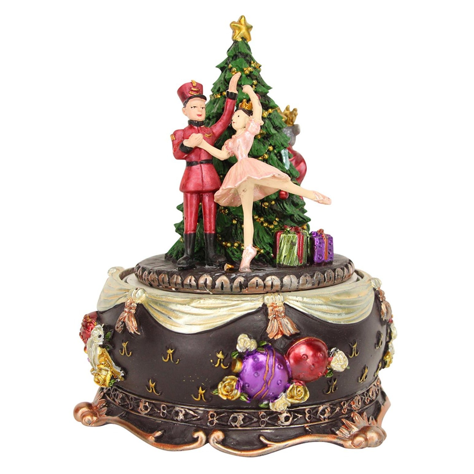 This revolving Christmas scene portrays the magic of childhood displaying the nutcracker dancing with the little girl who found him and on the other side, the Mouse King.