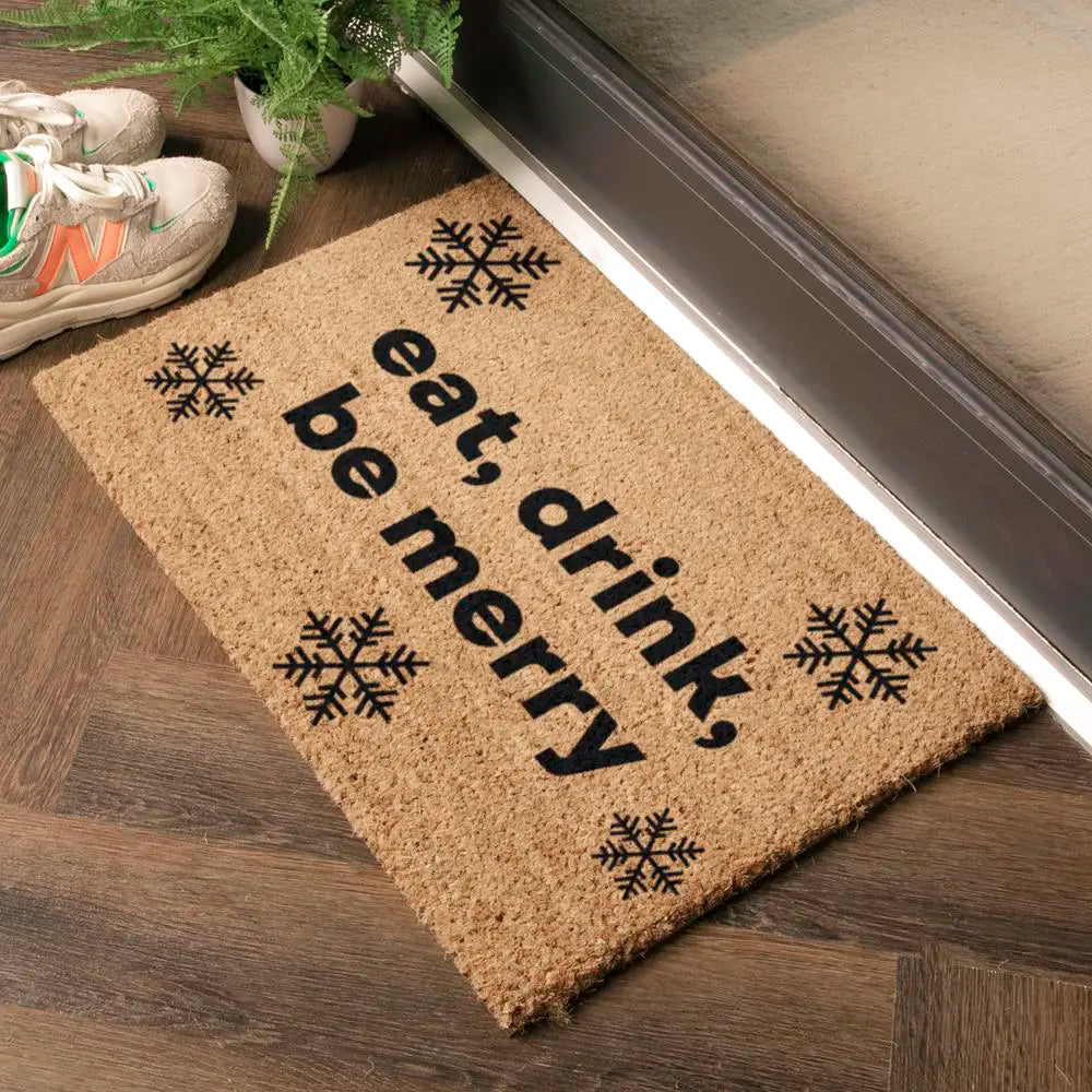 Reads "eat, drink, be merry" with a pretty snowflake illustrations, perfect for the wintery festive period.