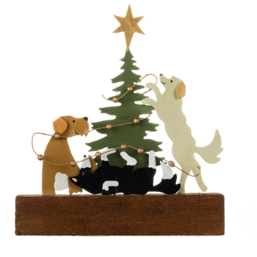 Hand painted and delicately finished on metal, this little dogs are helping decorate the Christmas tree (However, as helpful as they're trying be, it looks like they have their tinsel in a tangle!)