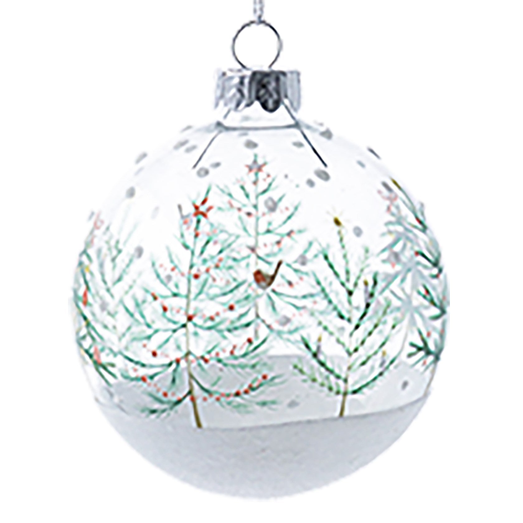Clear Glass Ball featuring Scandi Trees, lovely addition to your festive tree. Dimensions: 8cm x 8cm x 8cm