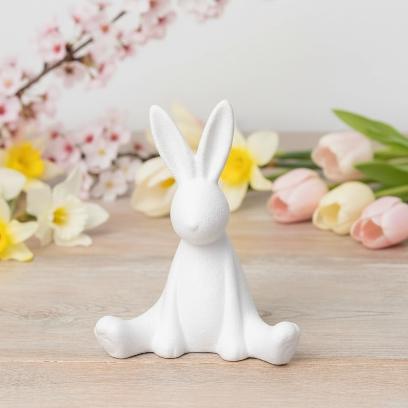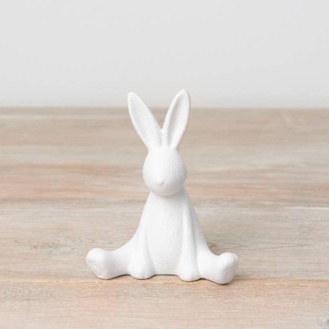 This contemporary sitting bunny ornament features a subtle textured finish, making it a stylish addition to any interior or a charming seasonal gift.