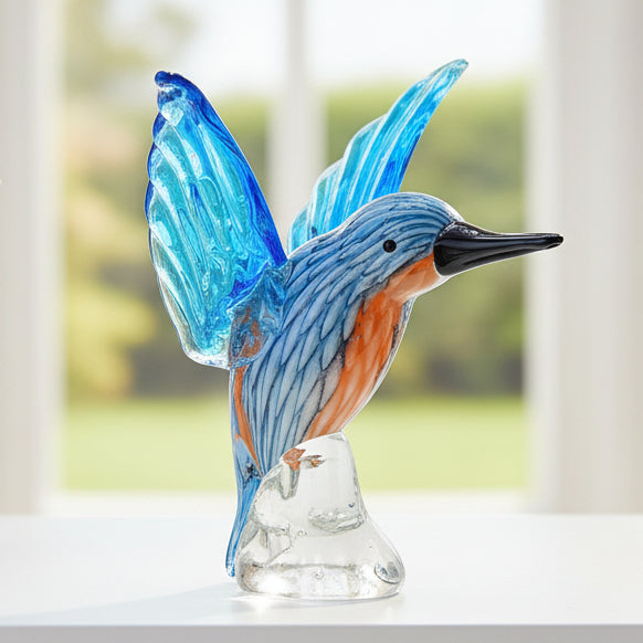 This radiant glass hummingbird captures the beauty and energy of the beloved bird in exquisite detail.