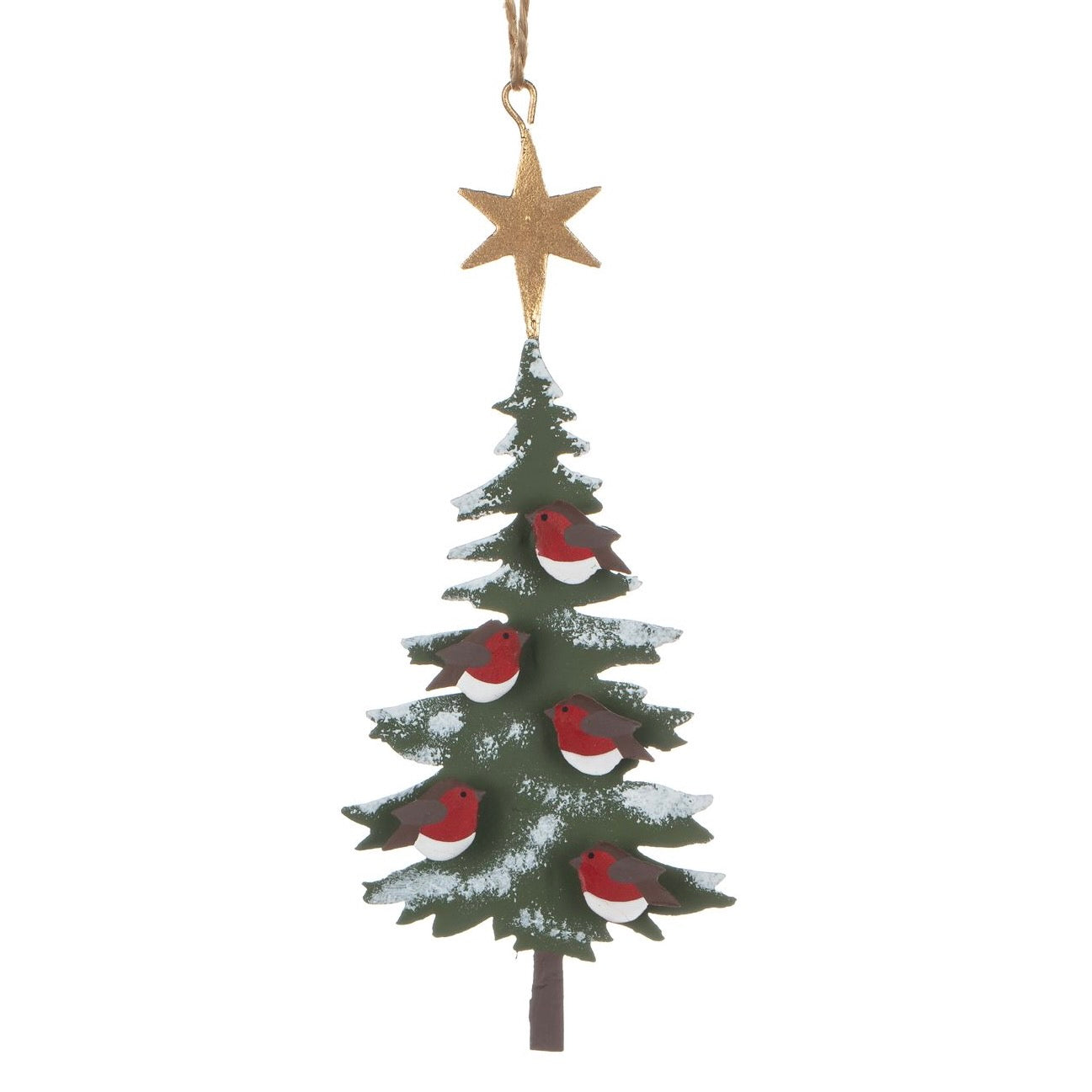 This hanging Christmas tree features five little robins perched on its branches - a lovely sentiment at Christmas time!