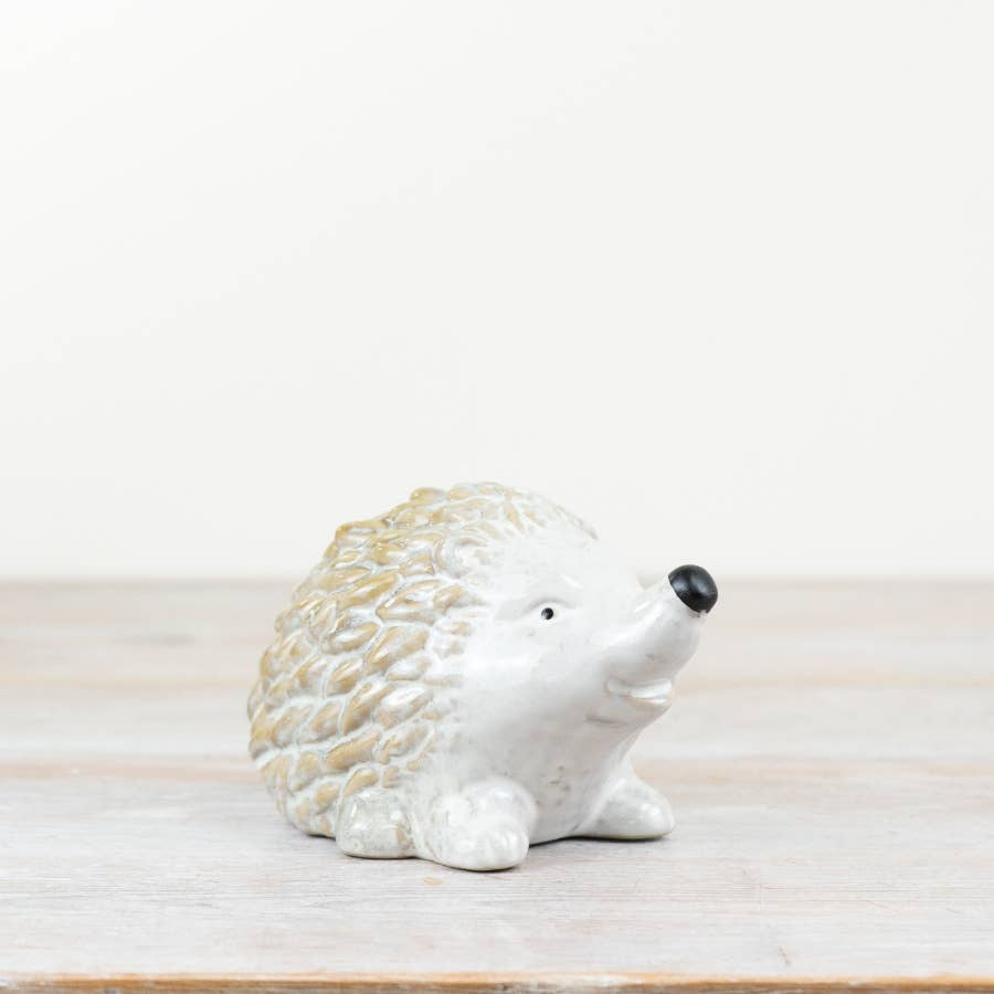 A stylish hedgehog decoration finished in soft, natural tones and enhanced with a rich, glossy glaze.