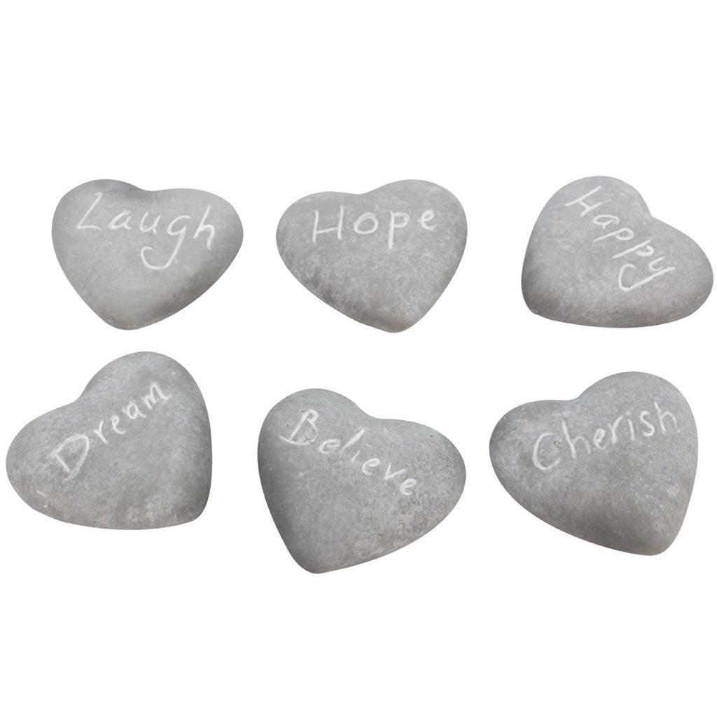 Pretty grey stone sentiment heart that will add a loving touch to any spot in your home or garden. Sentiments include 'Laugh', 'Hope', 'Happy', 'Dream', 'Believe' and 'Cherish'.